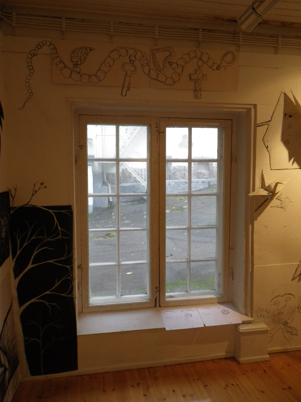 Ykkös- ja kakkosjaksossa yhden piirustuksen ja maalauksen 1-kurssin opiskelijat ovat tänä syksynä tutustuneet Vappu Rossin ja Jaakko Rönkön taiteessaan käyttämään seinäpiirtämiseen. Kurssien tavoitteina ovat olleet oman piirustusjäljen löytäminen ja kehittäminen sekä tilallinen työskentely.