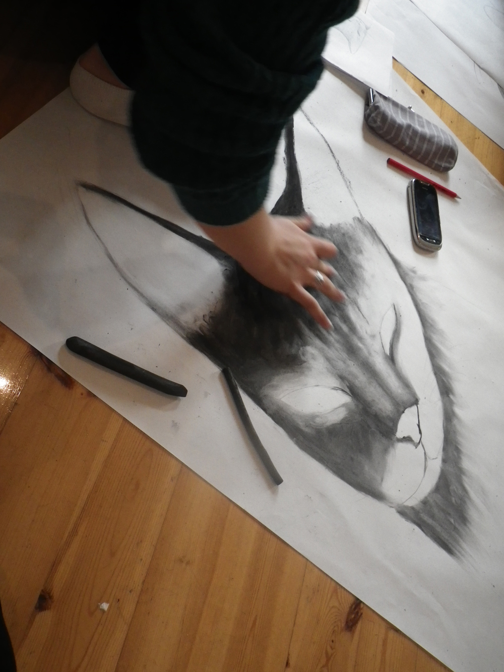 Muun muassa hiilellä, liidulla ja lyijykynällä tehtäviä seinäpiirustuksia työstettiin ykkösjaksolla suoraan seinälle Pengerkadun Camera Aurean tiloissa. Perinteisestä luokkatilasta irtautuminen rentoutti monen piirtämään entistä vapaammin ja rohkaisi työskentelemään aikaisempaa suuremmassa mittakaavassa. Onnistuneet lopputulokset vakuuttivat myös Kallion kulttuuritoimijat, ja kakkosjaksolle seinäpiirustustilat saatiinkin koulun ulkopuolelta: Made in Kallion (Vaasankatu 14) ja Kulmahuoneen (Siltasaarenkatu 15) monenlaiseen kulttuuritoimintaan soveltuvista tiloista.